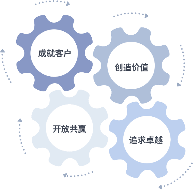 成就客户是一切决策的出发点,,,,创造价值是衡量所有工作的标准,,,追求卓越是币游国际做事做人的态度,,,,开放共赢是币游国际的格局也是最终的结果。。。。价值观的齿轮环环相扣,,推动着组织里的每个人不断向前。。
